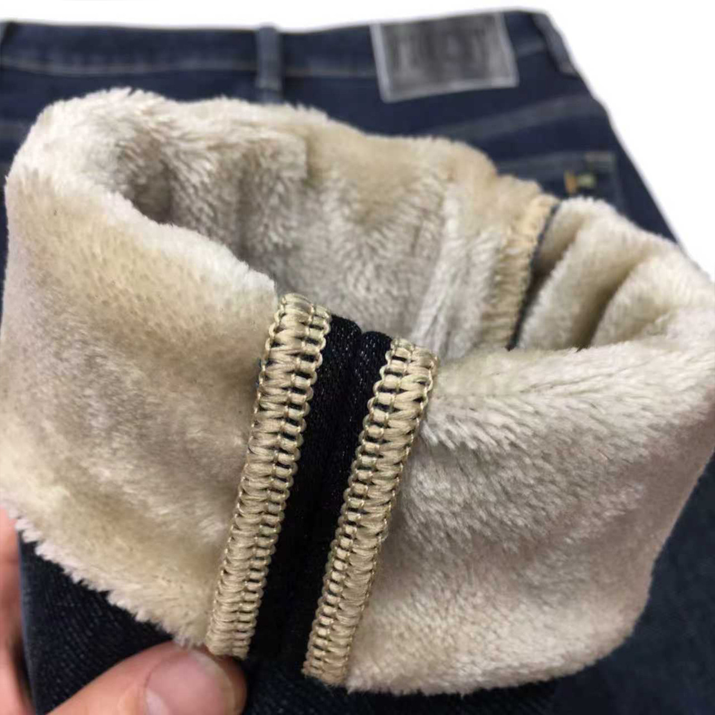 不褪色保暖加绒牛仔裤男冬季加厚款深蓝色高弹力修身小脚薄绒长裤