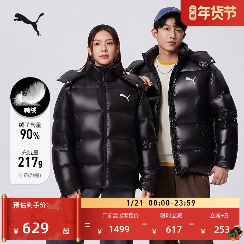 90绒短款鸭绒羽绒服男女同款PUMA彪马冬季保暖亮面运动外套585408