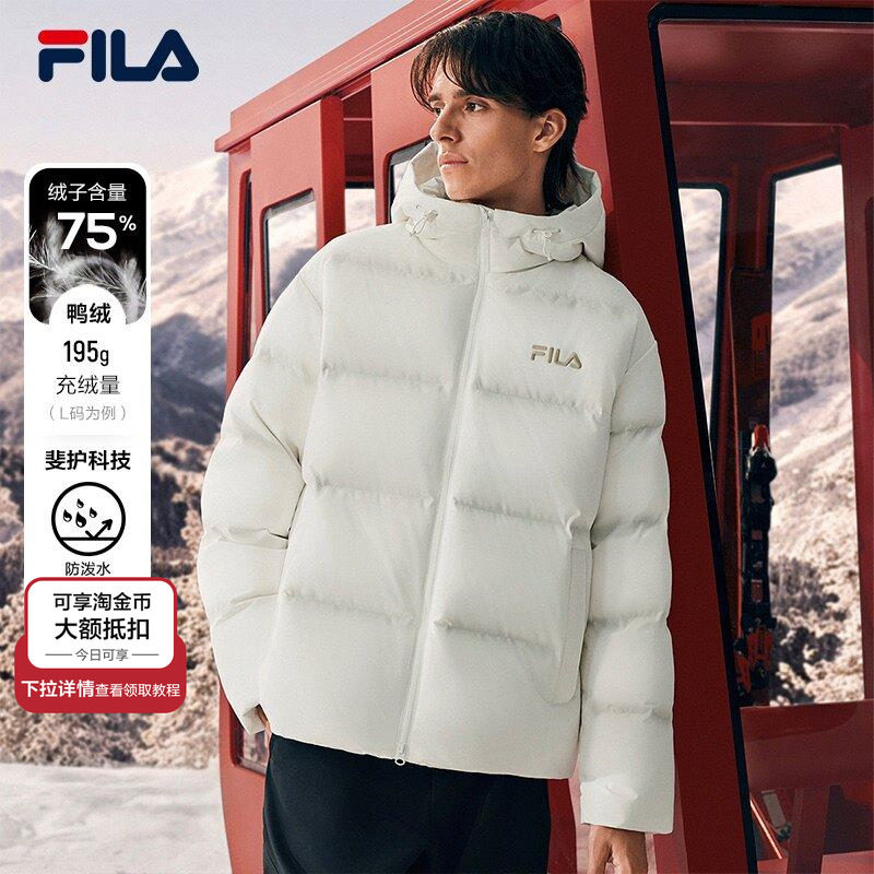 FILA RGB羽绒服|斐乐厚外套女2025冬新运动保暖中长款连帽上衣男