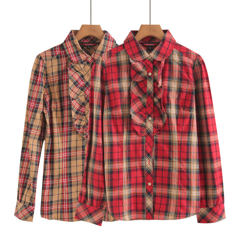 - 全棉衬衫 女 长袖 宽松 格子