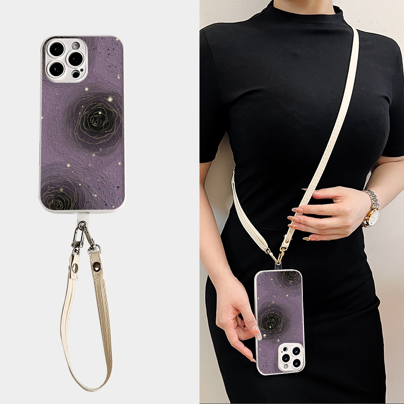 金边玫瑰适用OPPO手机壳FindX5斜挎Reno14Pro手提 X8Ultra可调绳A93S套2防A1摔6电7K12X网红11至尊G简约pro