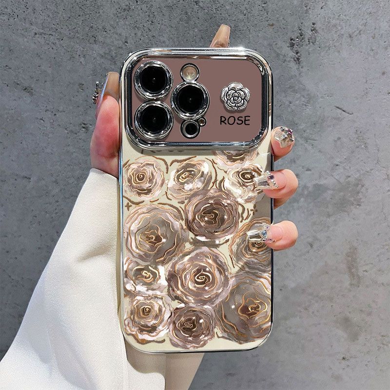 适用苹果15Pro手机壳14新款iPhone13硅胶12mini全包11奢华铂金玫瑰XSmax个性女8plus防摔6s保护套7时尚SE23花