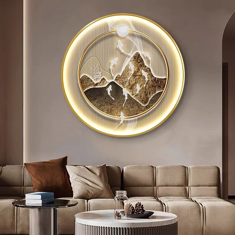 2023墙壁画客厅挂画圆形玄关装饰画背有靠山客厅灯画入户走廊过道