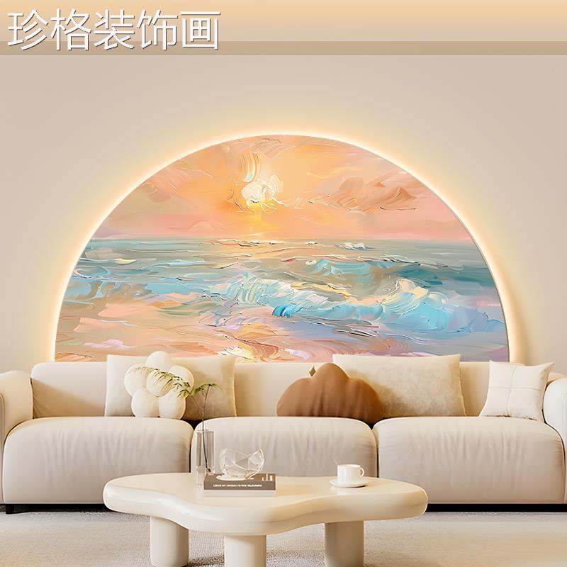 新款奶油风拱形粉色大海入户玄关装饰画过道走廊饭厅壁画客厅挂画