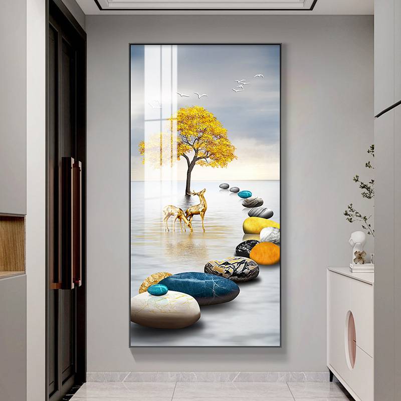 石来运转入户玄关装饰画竖版现代简约轻奢走廊过道墙壁画客厅挂画