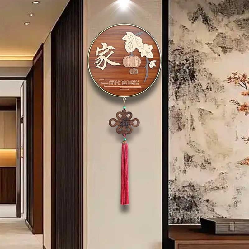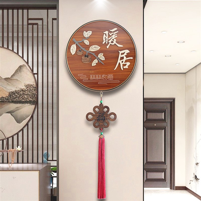 新中式餐厅装饰玄关沙发背景墙新年饭厅墙面挂件实木壁画客厅挂画