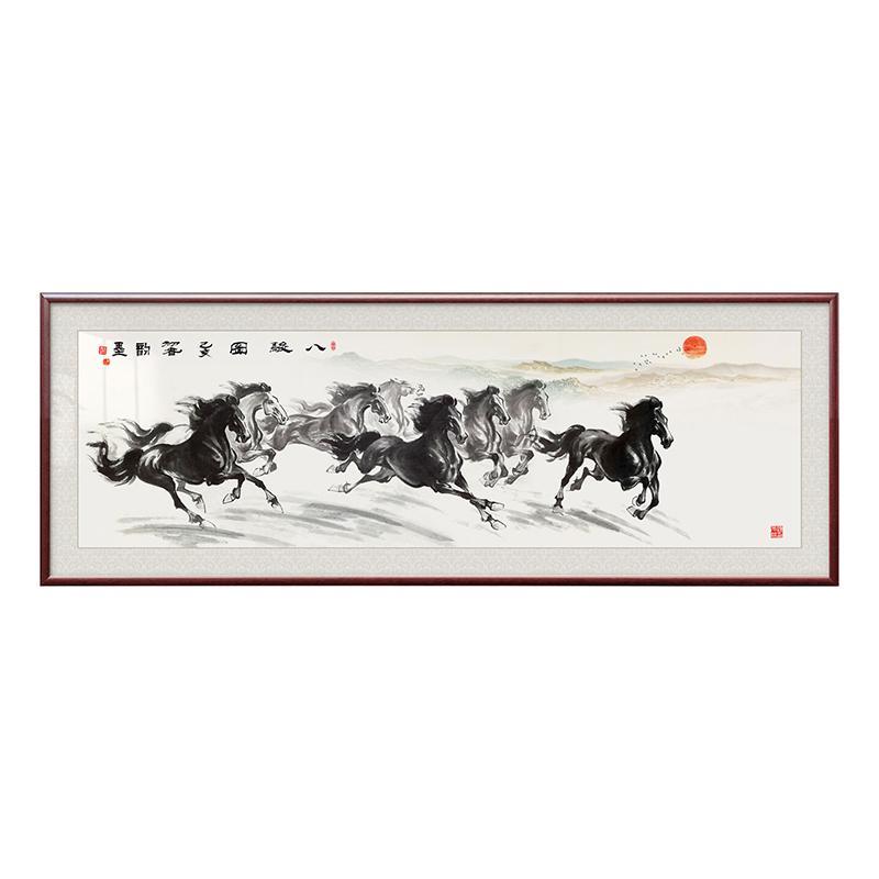 网红八骏图马到成新功墙壁画客厅挂画山水画中式公装饰画办室国画