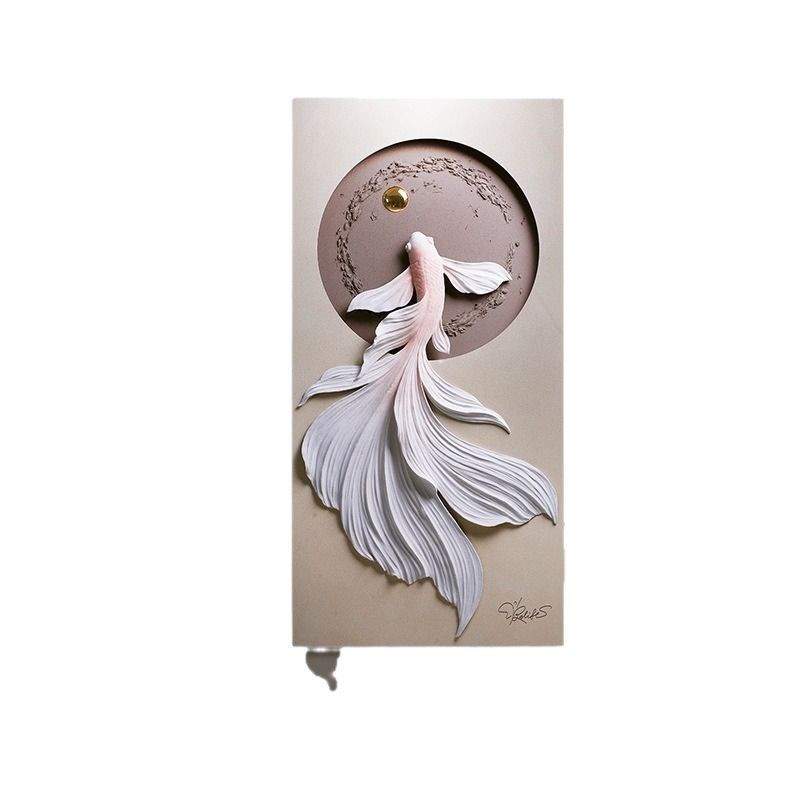 入户玄关锦鱼立体壁画客厅挂画走廊过道灯光进门现代轻奢感装饰画