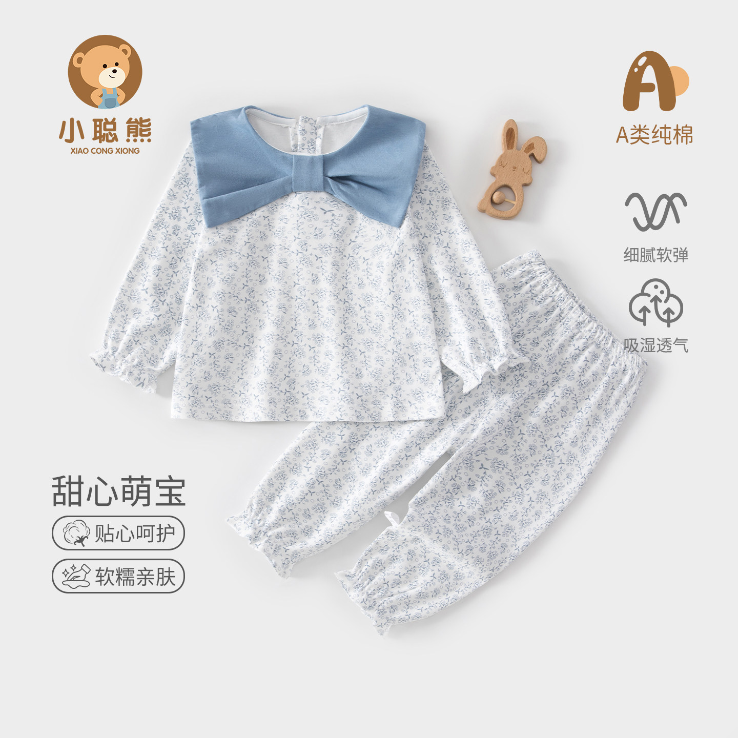 婴儿衣服春秋纯棉分体套装小月龄宝宝春装女宝分开式超好看外出服
