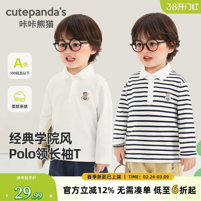 咔咔熊猫儿童polo长袖t恤男童宝宝春装女童春季婴儿衣服翻领上衣