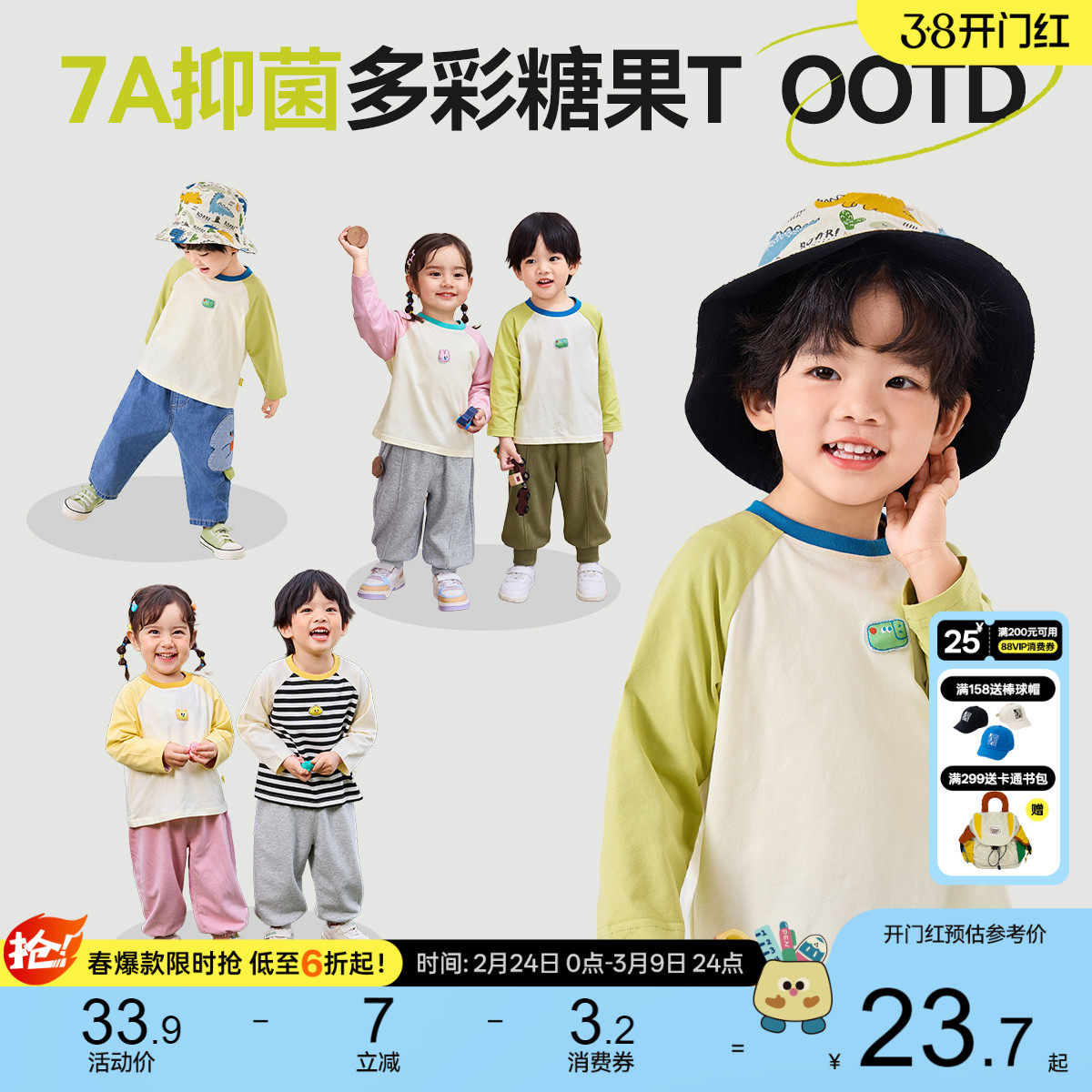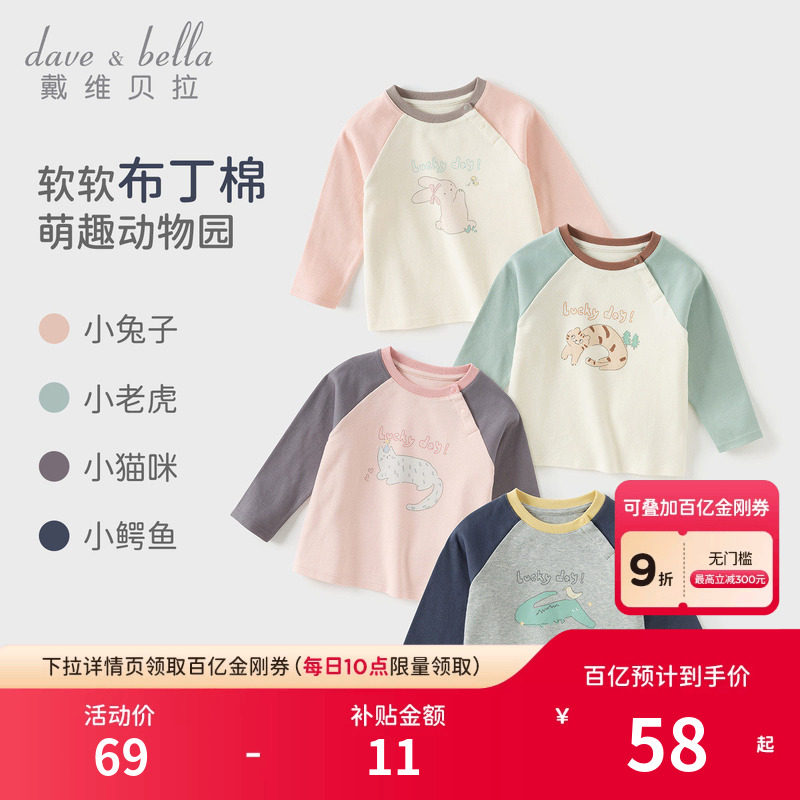 戴维贝拉儿童长袖T恤2026男童春装打底衫女宝宝新款纯棉上衣A类
