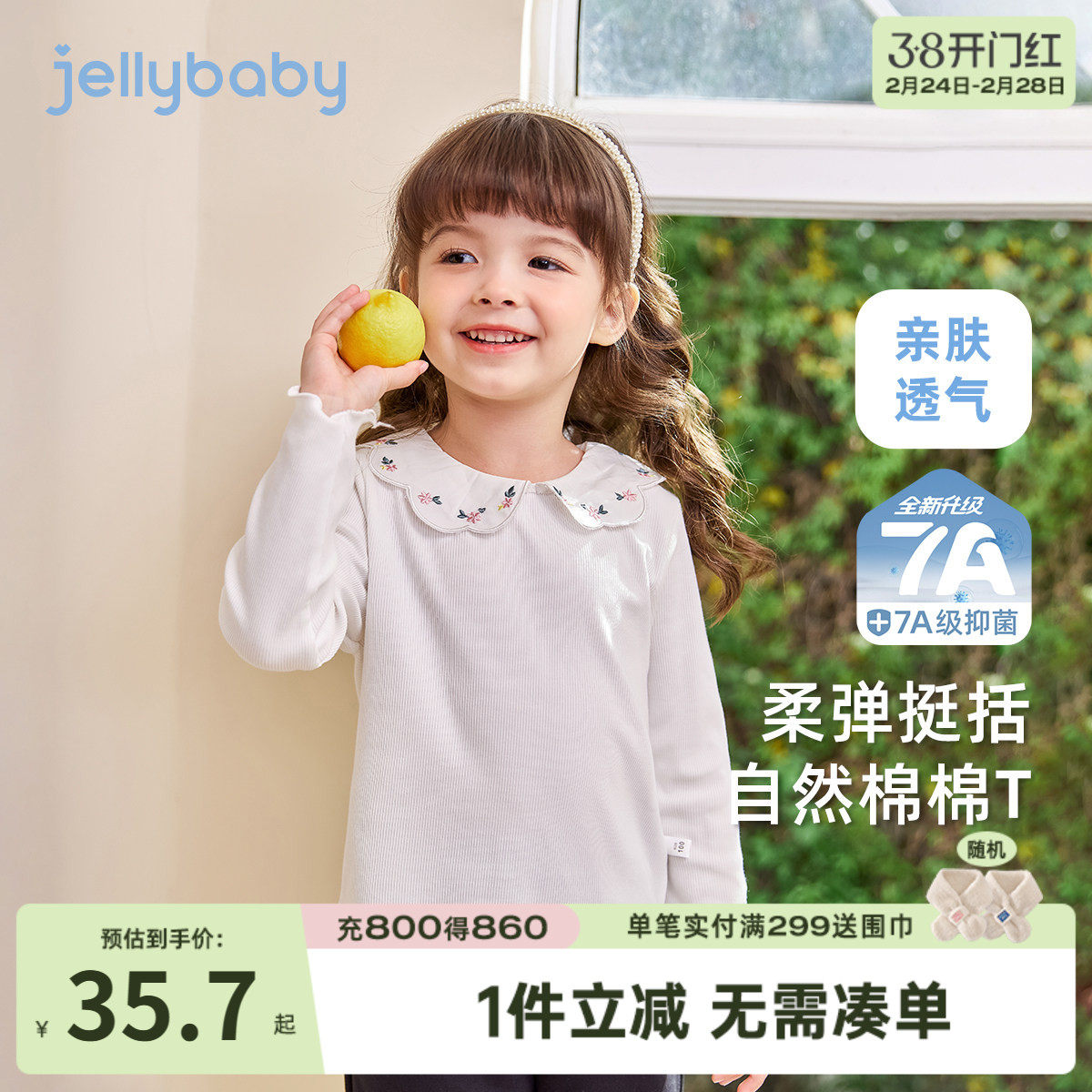 儿童T恤长袖春秋3岁宝宝春装女孩春季小童白色春款女童娃娃领上衣