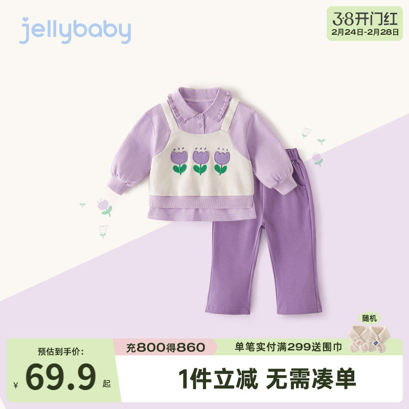 小O宝童装 宝宝紫色春装套装女花朵2026新款女童时髦洋气套装裙
