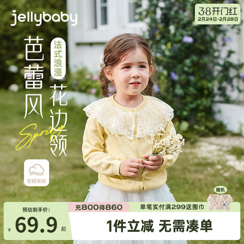 杰里贝比儿童外套春季小女孩法式春秋洋气宝宝春装女童娃娃领开衫