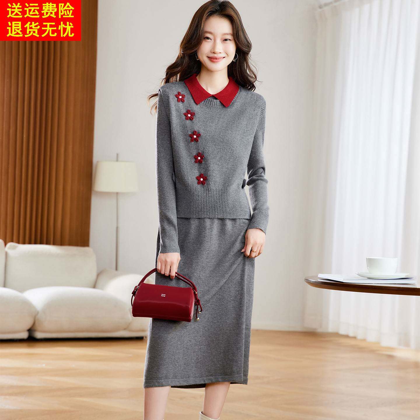 - 冬季裙套装女装两件套