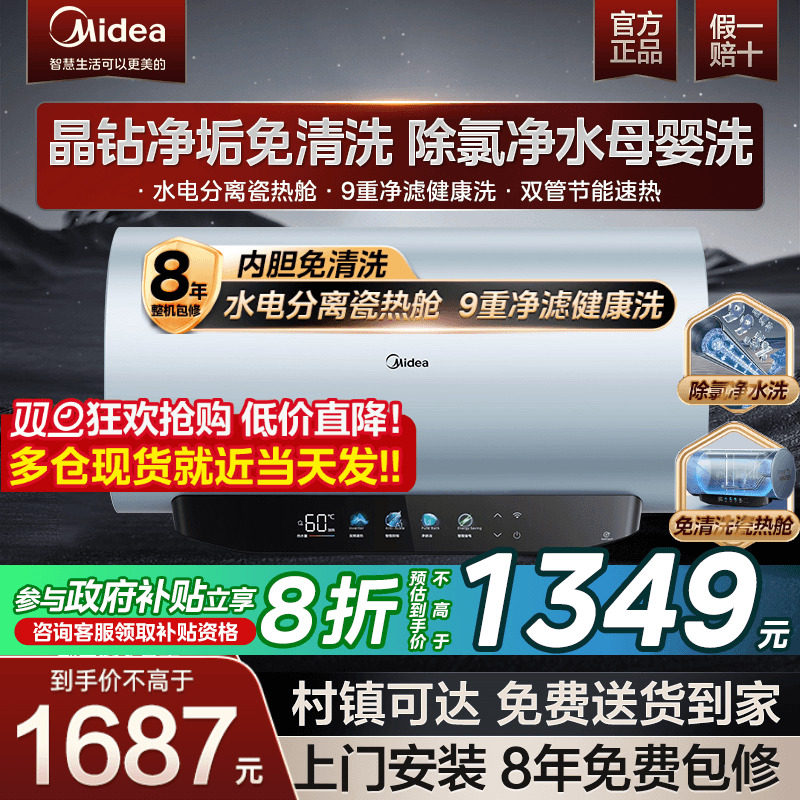 【政府换新补贴】美的电热水器家用洗澡一级能效60升50升镁棒JE4