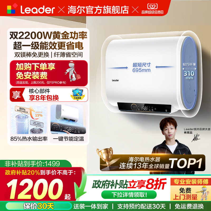 以旧换新海尔统帅电热水器官方家用卫生间节能洗澡淋浴一级新LD5