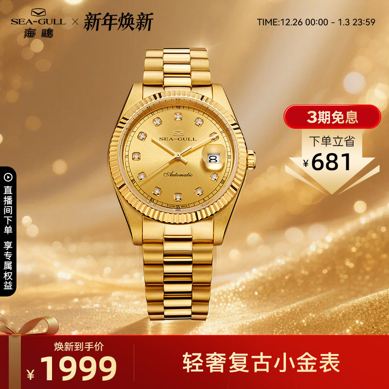 海鸥表18K金表轻奢男女款手表自动机械表情侣腕表7055圣诞礼物