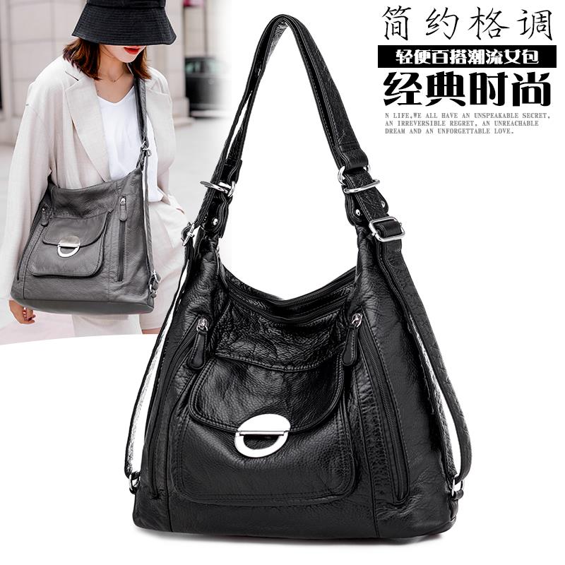 2020新款时尚百搭水洗软皮三用双肩包大容量单肩斜挎女包托特大包