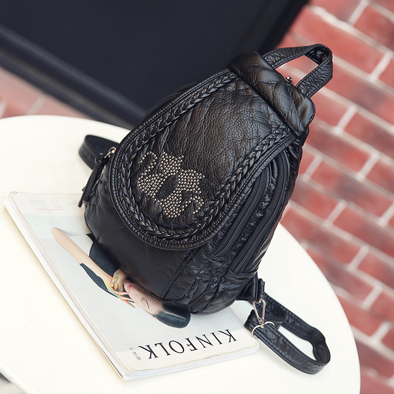 2017新款韩版水洗皮双肩包女小号软皮休闲背包时尚两用包迷你小包