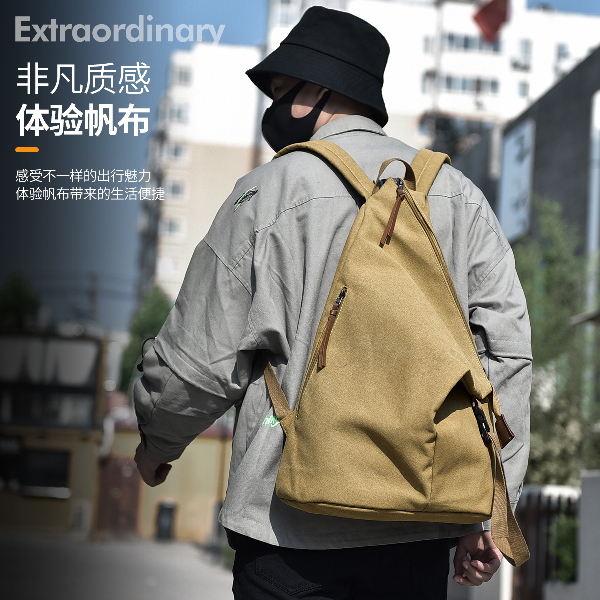 制道重工水洗帆布配皮双肩包复古做旧风背包男女大容量通勤旅行包