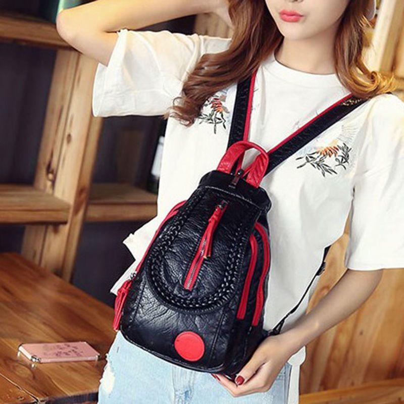PU软水洗皮包韩版背包青年柔软舒适少女大学生单肩包多功能双肩包