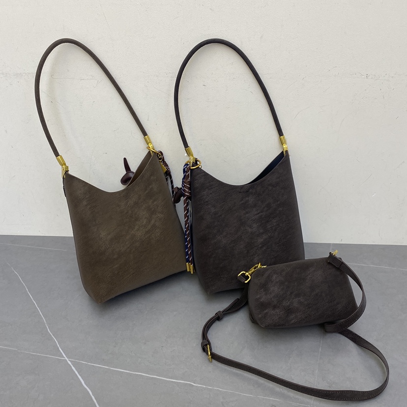 水洗纹新款女包时尚百搭真皮单肩斜挎包腋下包子母包水桶包手提包