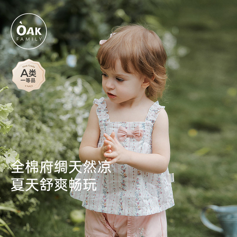 Oak Family夏季宝宝吊带背心上衣全棉宽松连衣裙女童打底小衫衣服