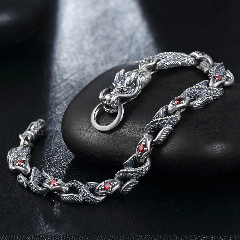 925银饰复古男士手链个性潮男龙霸气泰银时尚饰品韩版日韩男手链