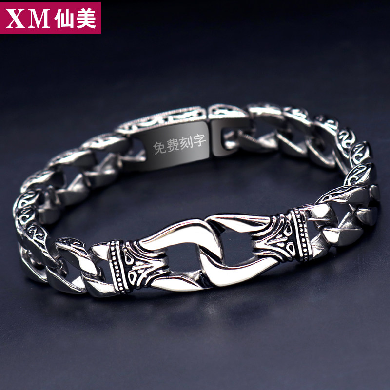 个性钛钢手链男士霸气韩版手环潮男饰品学生手链配饰首饰刻字礼物
