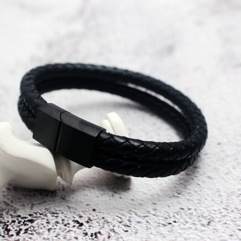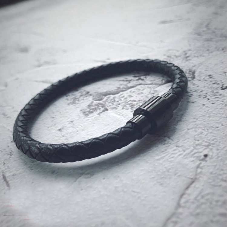 黑色牛皮磁卡扣首饰品男士手链手环个性简约韩版潮男编织学生手饰
