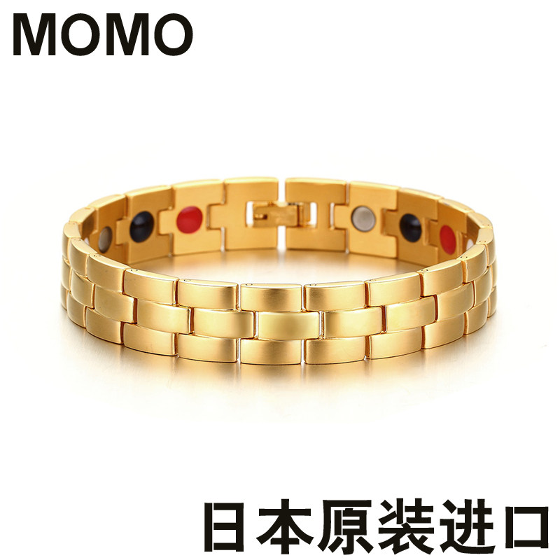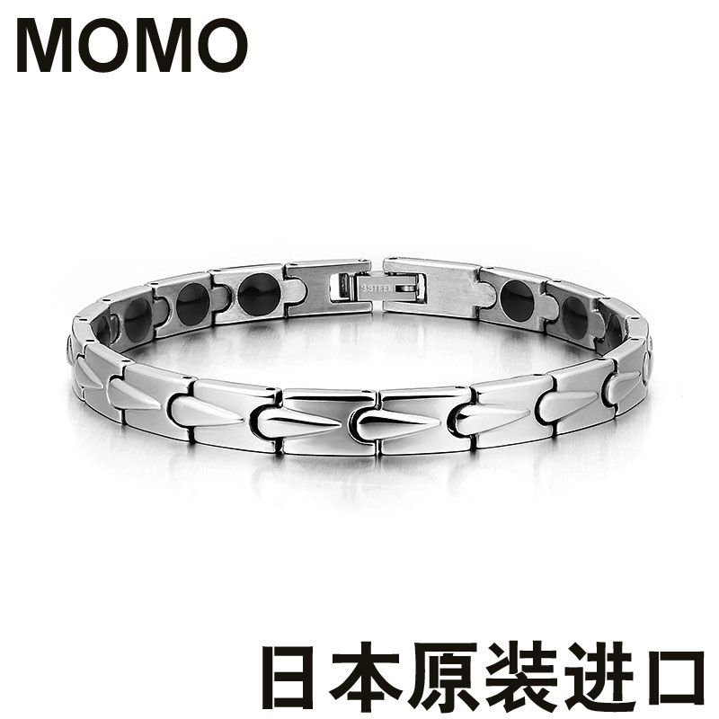 日本正品MOMO韩版时尚保健磁钛钢手链男士配饰潮男个性男生首饰品