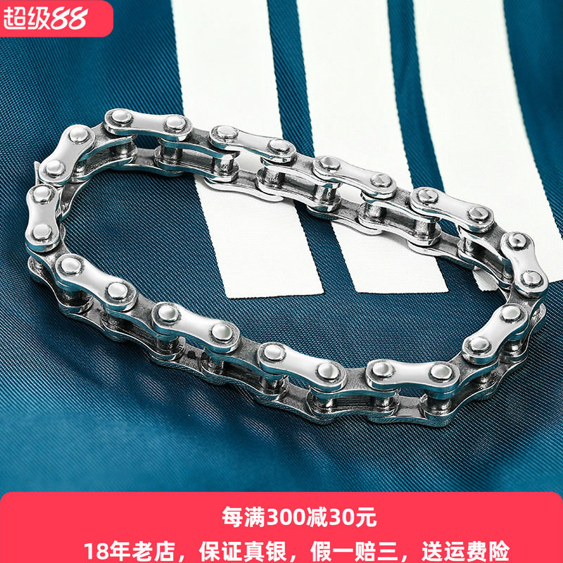 机车链条手链男士纯银个性潮人嘻哈简约韩版潮男欧美时尚朋克复古