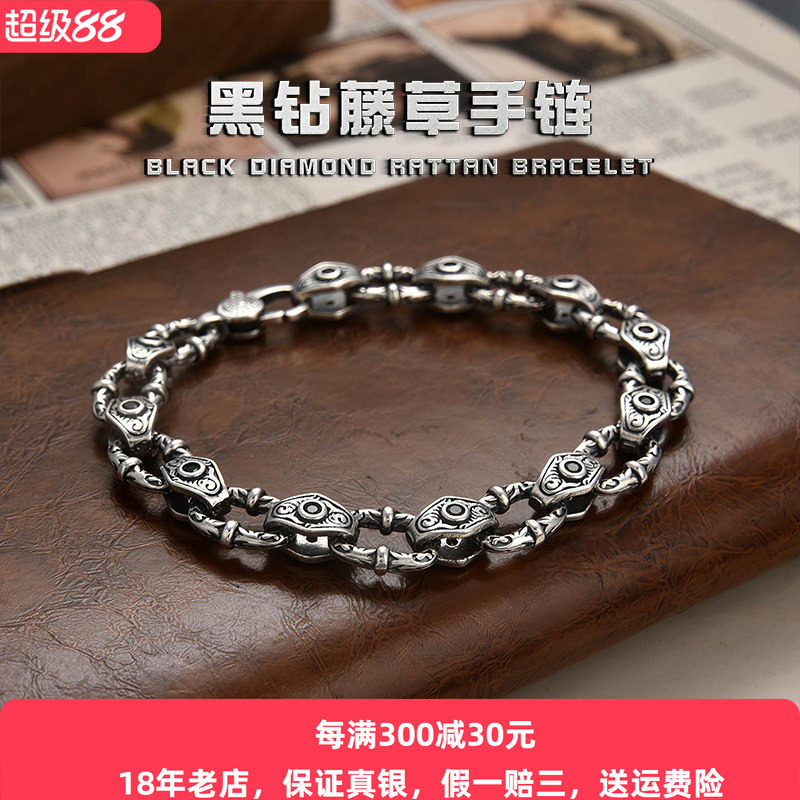 925纯银个性男女款藤草纹手链复古简约霸气韩版嘻哈小众霸气手环