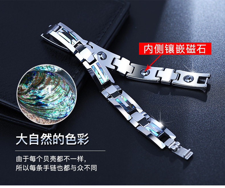 钨钢磁石手链潮男简约磁疗饰品个性锗石贝壳韩版钨金保健手链送礼