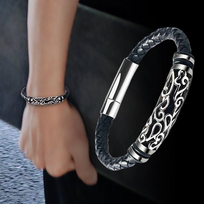 个性霸气编制皮绳手链男士欧美钛钢手环复古潮男饰品配饰韩版手链