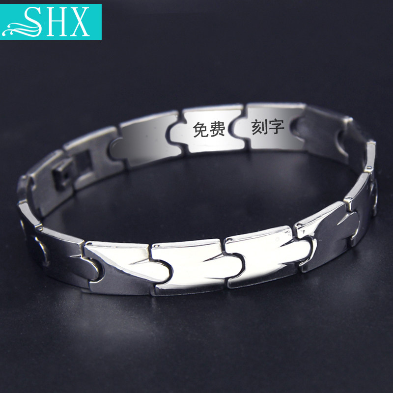 泰腾尼韩版时尚首饰品情侣款钨金手链潮男磁石手圈女手环个性刻字