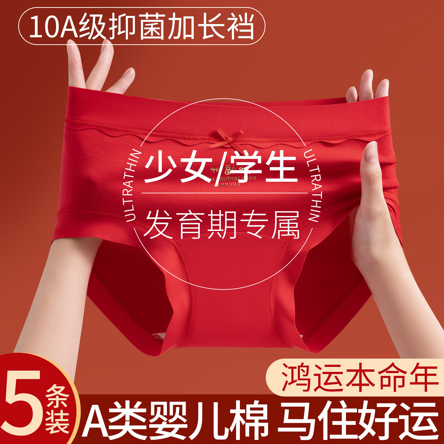 青少年本命年红色少女孩内裤纯棉抗菌初高中学生属马年大童三角裤