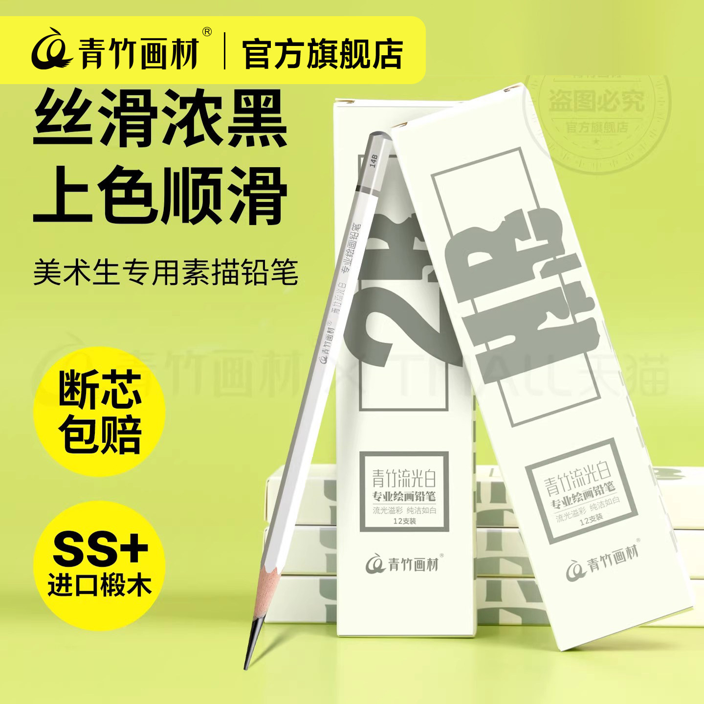 青竹流光白素描铅笔2B4B14B炭笔美术生专用速写笔套装初学者绘画hb6b8b10b12b工具画画绘图软中硬考试用画笔