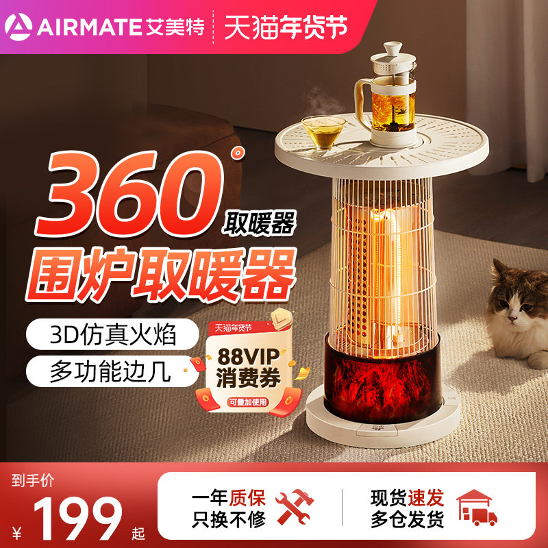 艾美特围炉煮茶取暖器暖风机家用小型小太阳烤火炉电暖器新款茶几