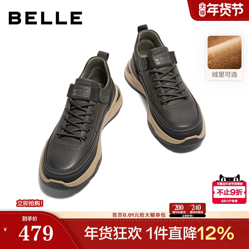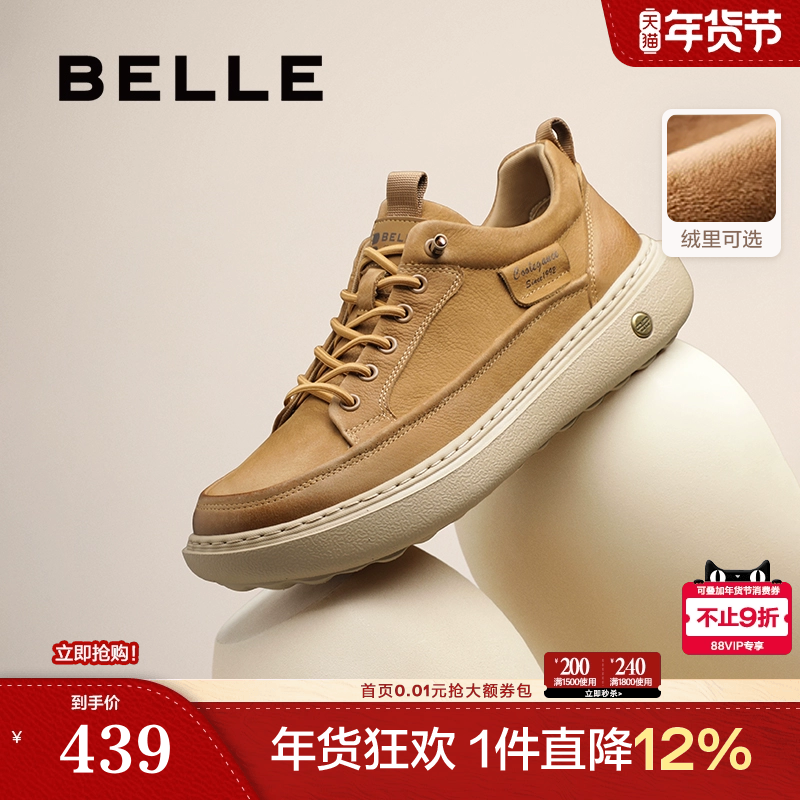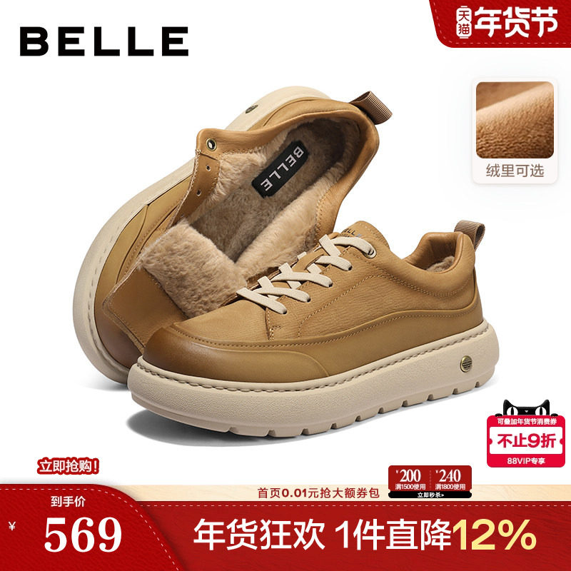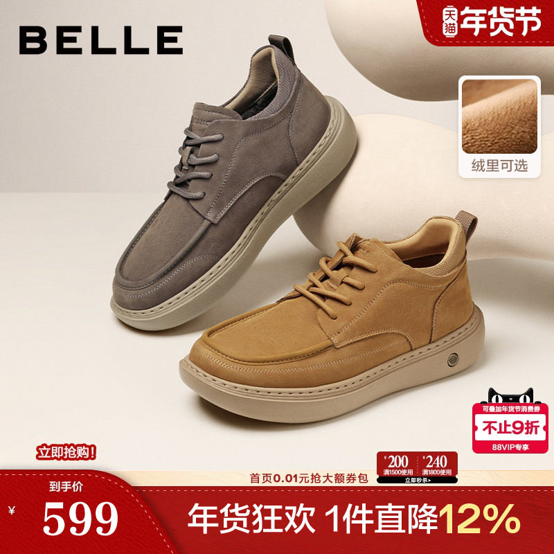 百丽男鞋加绒棉鞋工装鞋男士26新商场款厚底增高休闲板鞋8YH01AM6