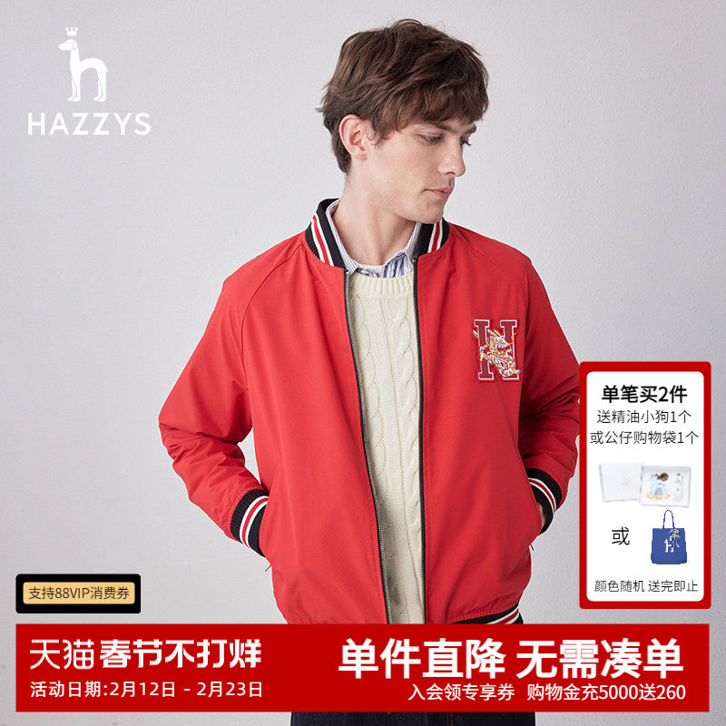 Hazzys哈吉斯奥莱春秋款基础棒球领两面穿夹克男休闲外套韩版潮男
