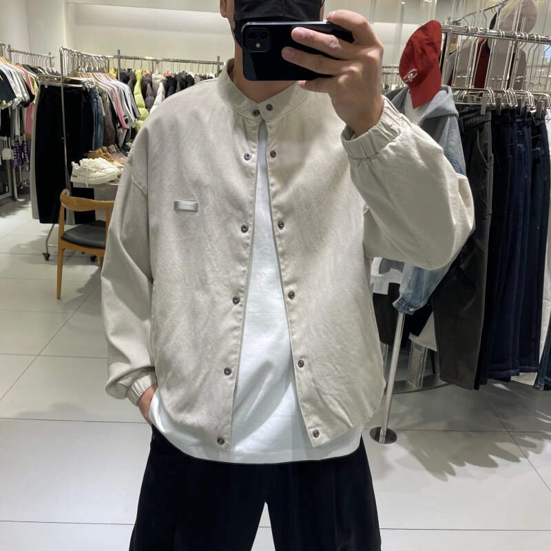 美式休闲男韩版修身做旧简约小立领工装夹克春季新款百搭痞帅外套