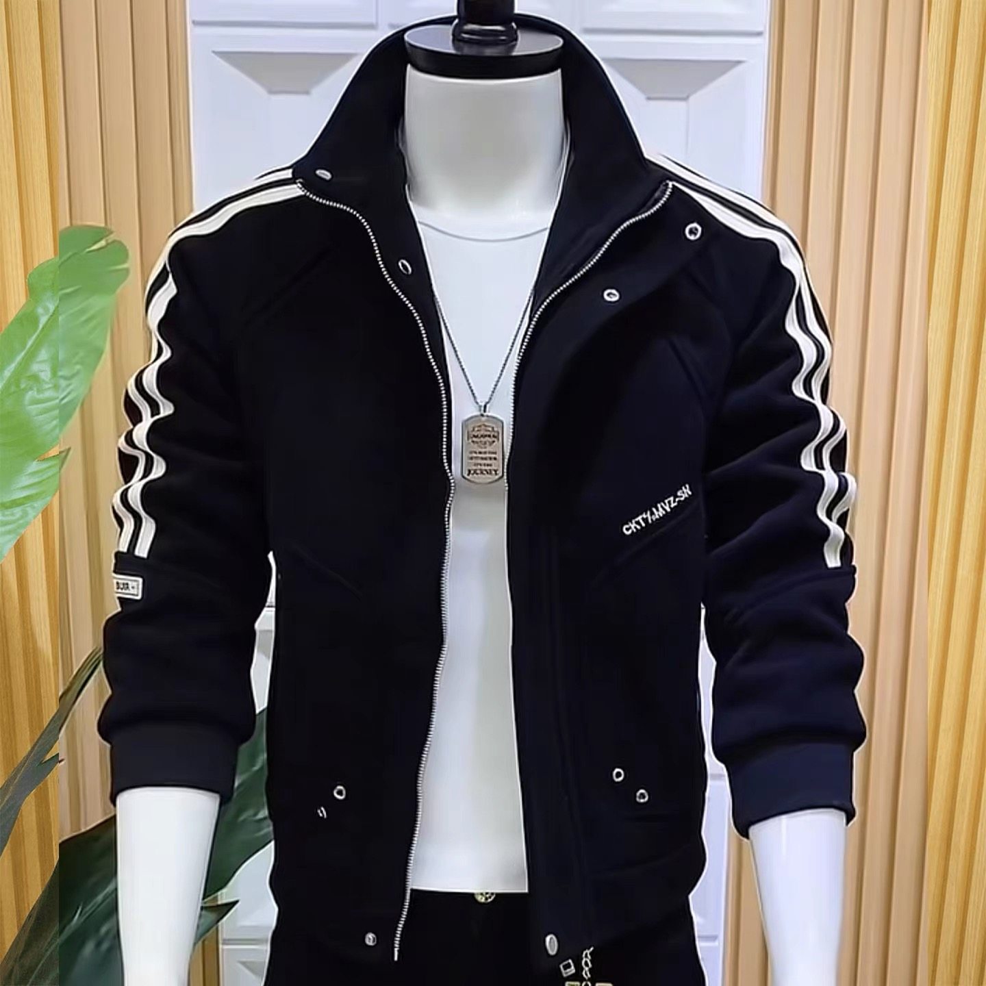 2025新款春秋夹克韩版修身立领拼接潮男加绒加厚外套休闲潮流爆款