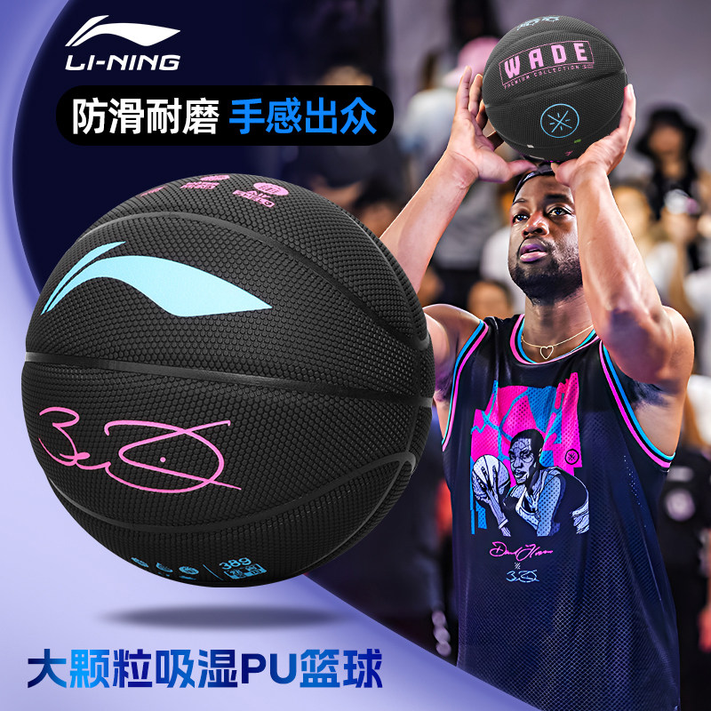 李宁篮球韦德签名篮球熔岩黑粉色吸湿室外耐磨水泥地成人专业蓝球