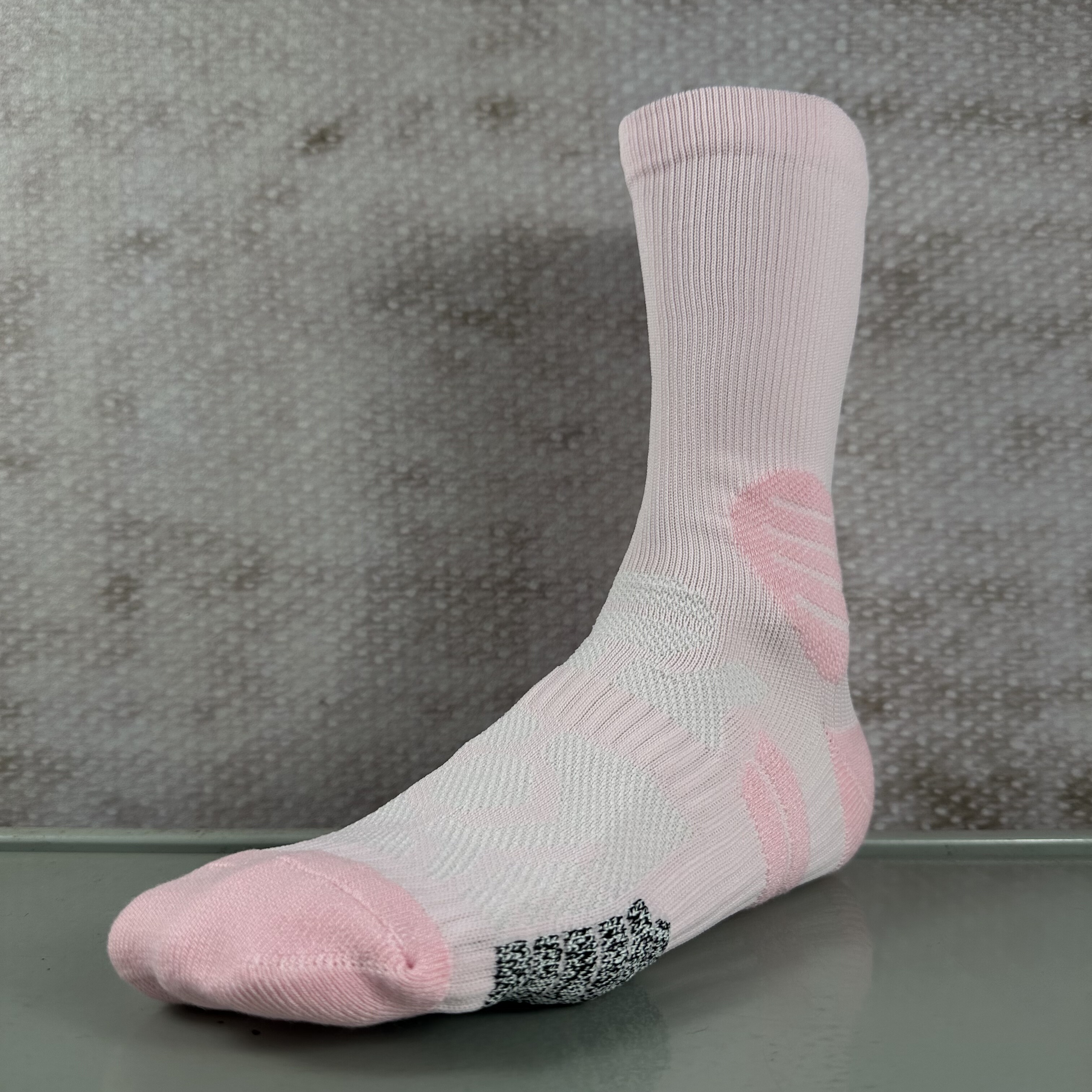 UZPO 粉色篮球袜高帮实战运动毛巾底防滑耐磨透气-纯色脚踝加固