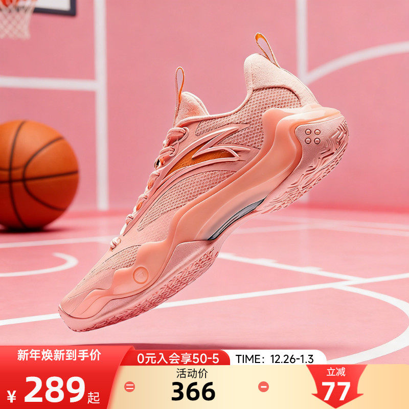 安踏狂潮4BM男氮科技粉色篮球鞋耐磨防滑支撑实战低帮专业运动鞋
