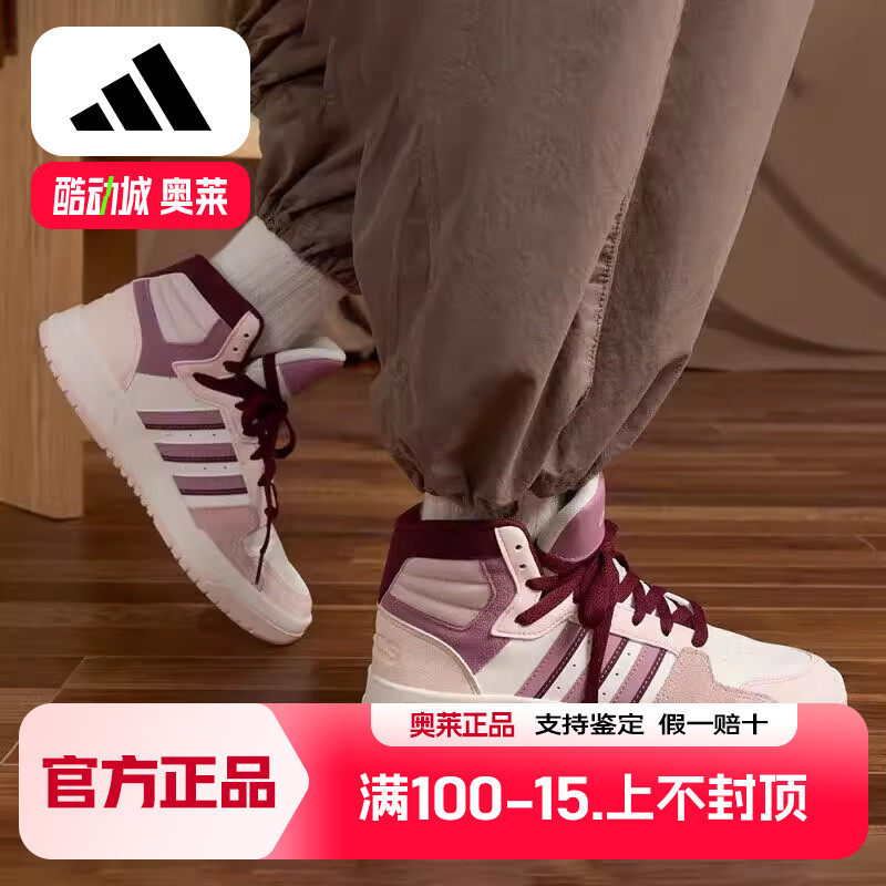 adidas阿迪达斯女鞋冬季新款粉色篮球皮面复古高帮鞋女板鞋ID6010