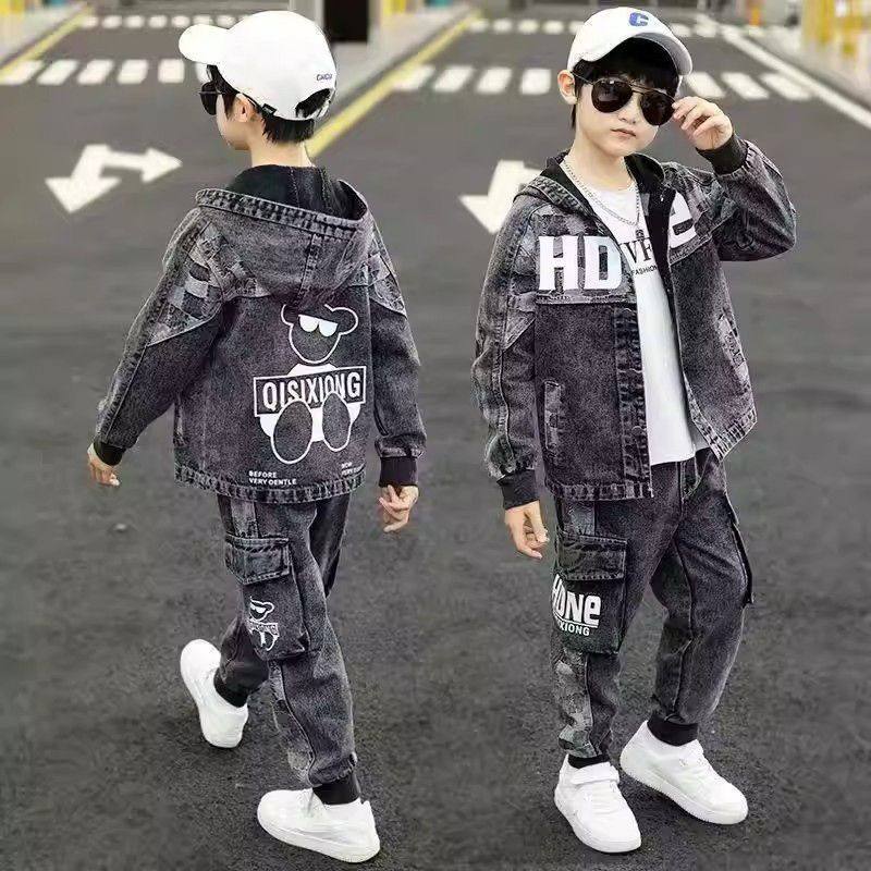 [防褪色]男童牛仔套装儿童帅气休闲装宝宝冬装时髦童装大童两件套
