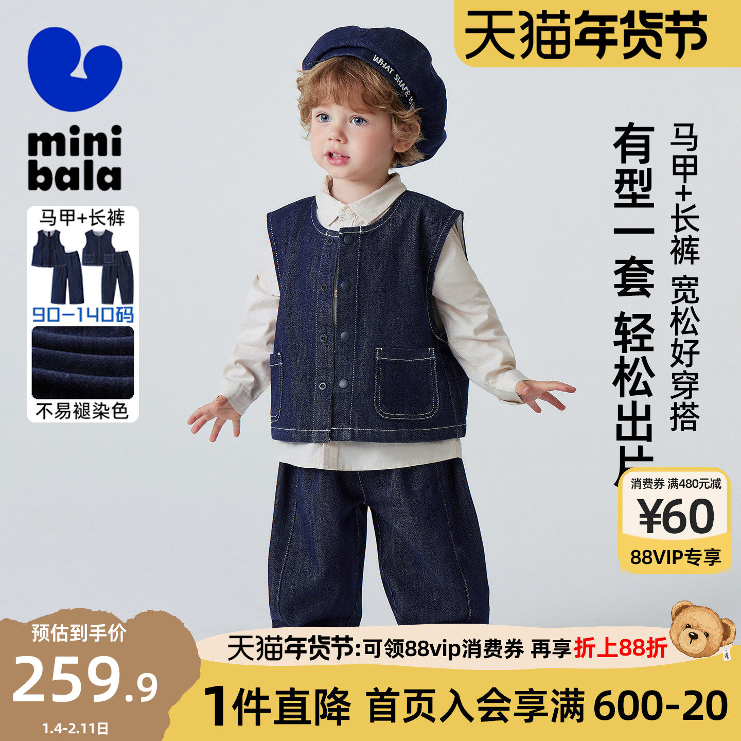 迷你巴拉巴拉男童牛仔套装2026春新款儿童马甲长裤不易褪色两件套